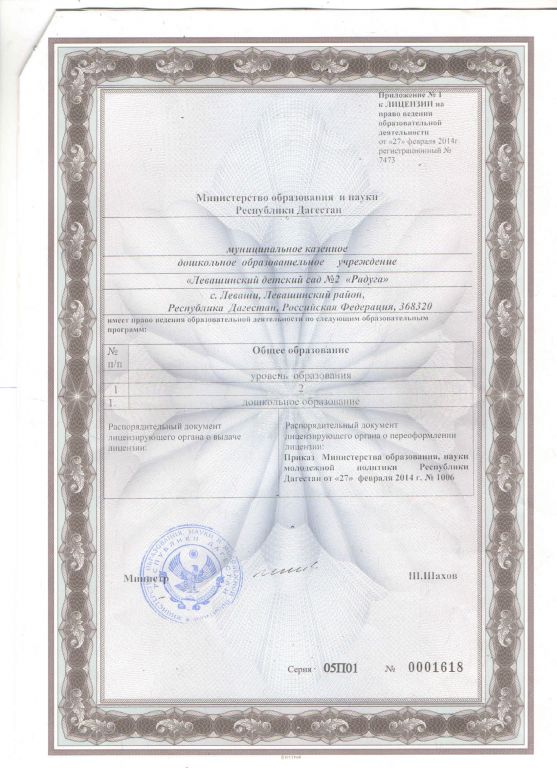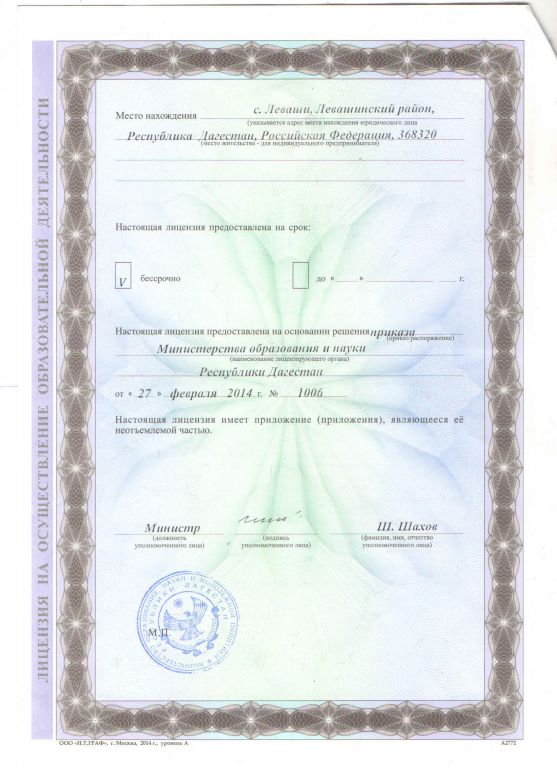 | Адрес местонахождения образовательной организации* | 368320, Республика Дагестан, Левашинский район, с. Леваши |